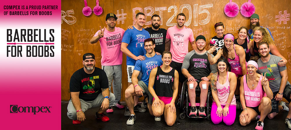 Compex is proud to partner with Barbells for Boobs. By supercharging yourself, you are helping us inform and educate people and giving those affected by breast cancer the opportunity to survive and thrive. A portion of all online sales at ShopCompex.com are donated to Barbells for Boobs and will help save another life from the devastating effects of breast cancer. Join the cause by purchasing a muscle stimulator to supercharge your workout and contribute to the cause.